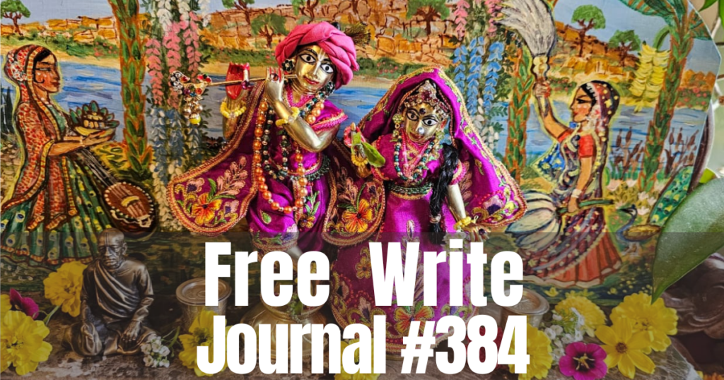 The Writing Sessions are my heart and soul. I’m trying my best to keep up with them. I am working with a few devotees, and they are far ahead of me. I wander in the wilderness of old age. I make my Writing Sessions as best I can. Every day I try to come up with a new subject. Today I am thinking of my parents. But I don’t think of them deeply. They are long gone from my life. Śrīla Prabhupāda wrote a poem when he was a sannyāsī, and he said now all my friends and relatives are gone. They are just a list of names now. I am like that too. I am a sannyāsī with a few friends. I love the books of Śrīla Prabhupāda. I try to keep up with them. I read as much as I can and then listen to his bhajanas.