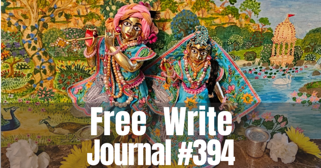 The Writing Sessions are my heart and soul. I’m trying my best to keep up with them. I am working with a few devotees, and they are far ahead of me. I wander in the wilderness of old age. I make my Writing Sessions as best I can. Every day I try to come up with a new subject. Today I am thinking of my parents. But I don’t think of them deeply. They are long gone from my life. Śrīla Prabhupāda wrote a poem when he was a sannyāsī, and he said now all my friends and relatives are gone. They are just a list of names now. I am like that too. I am a sannyāsī with a few friends. I love the books of Śrīla Prabhupāda. I try to keep up with them. I read as much as I can and then listen to his bhajanas.